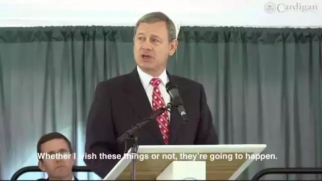 罗伯茨法官:2005年9月由小布什总统提名,参议院批准通过,就任美国联邦最高法院的第17任首席大法官,是美国两个世纪以来最年轻的首席大法官。下面是演讲全文: