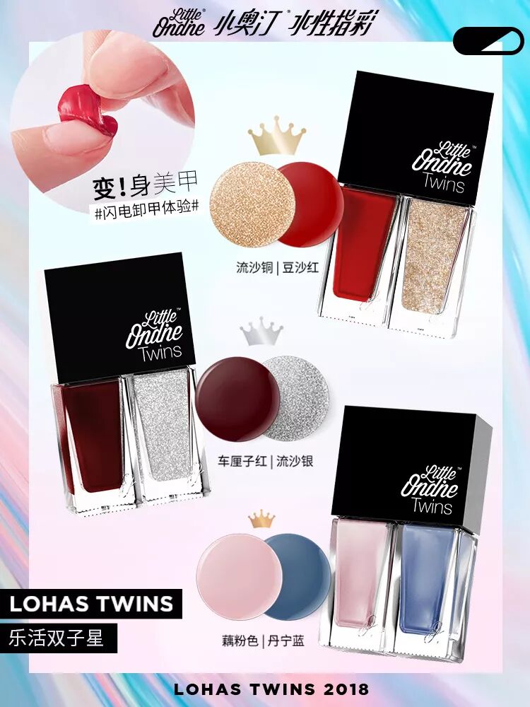 小奥汀双子星指甲油双色可剥可撕拉 ¥30包邮 正价75元 可持3-5天
