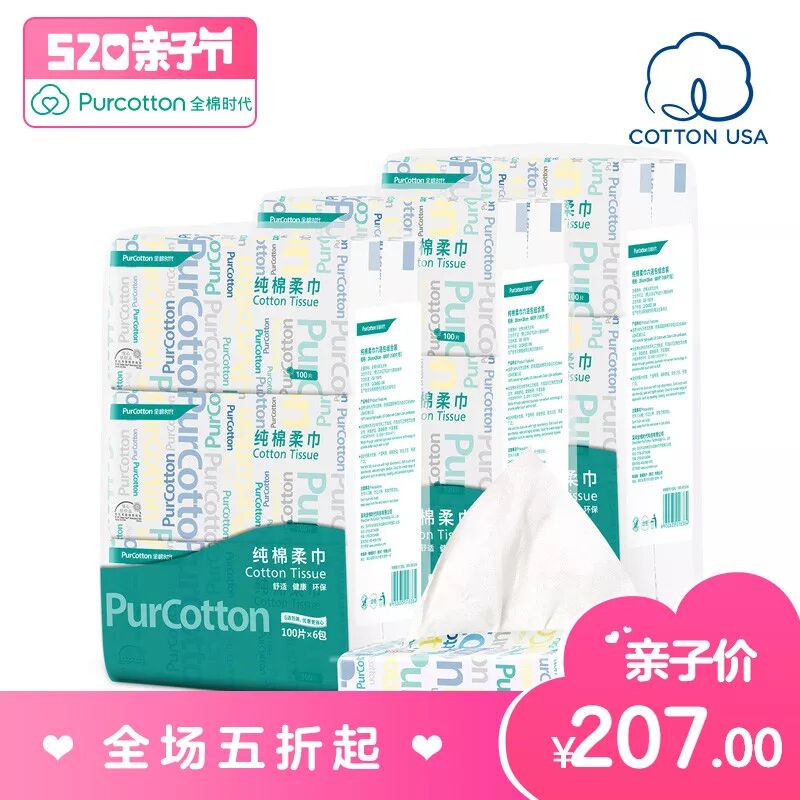 全棉时代 居家纯棉柔巾 18包 ¥207包邮 持平双11价