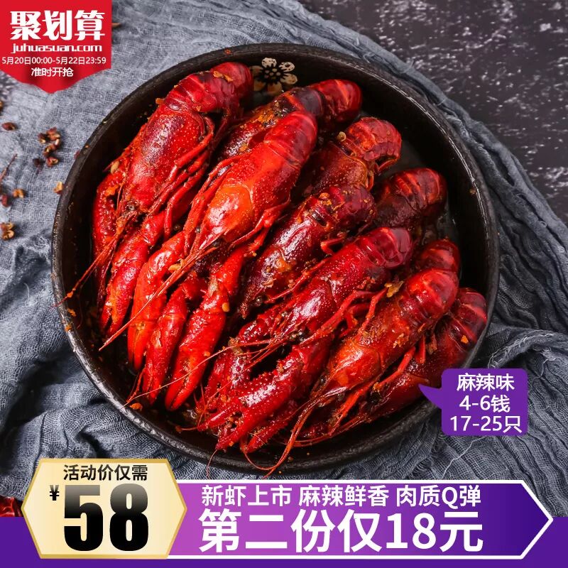麻辣小龙虾熟食 鲜活现做1.8斤装香辣味 ¥58包邮 第2份18元