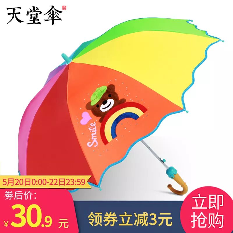 天堂伞 黑胶防晒直柄可爱儿童彩虹伞 价格下方领3元券后30.9包邮