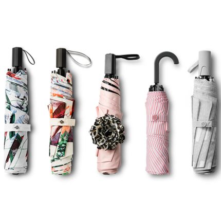 紫外线防护系数大于50,铝合金伞棒,拉扣式伞带,传统手柄,握感舒适,伞面撑开直径87cm,伞顶到伞手柄长度57cm,收起27cm长,带伞套,小巧精致,方便随身携带。