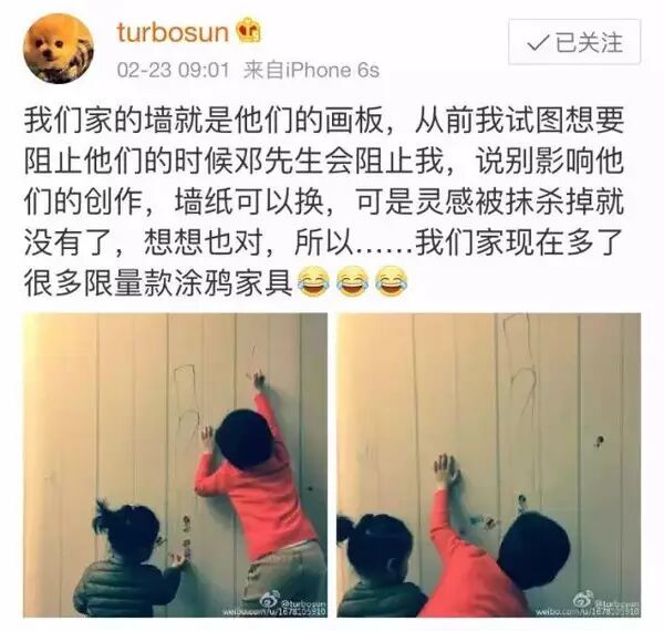 很多宝爸宝妈会有这样的烦恼,孩子自从学会拿笔之后,就喜欢乱涂乱画,家里的家具、墙都能成为他们的画板。这个时候,爸爸妈妈要学学孙俪,千万不要阻止孩子天马行空式的涂鸦,因为这些画代表了他们的内心世界。