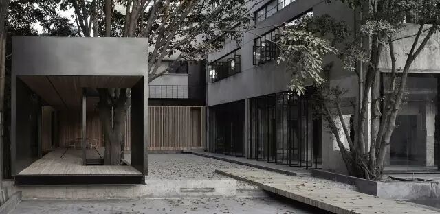 庭院里铺着细碎的石子,有种枯山水的气质在里面。想象着在偌大的厂房庭院里,泡上一杯清茶,眼前是时光交错的厂房庭院,应该是一种少有的感觉。