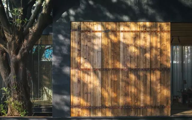 张伟说以前外公外婆家就是这样的门,根据不同的天气情况来选择木门敞开的大小,放在这里,又恰如其分地融入进来。