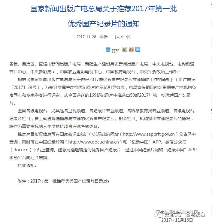 2017年第一批推荐优秀国产纪录片目录 | ||||