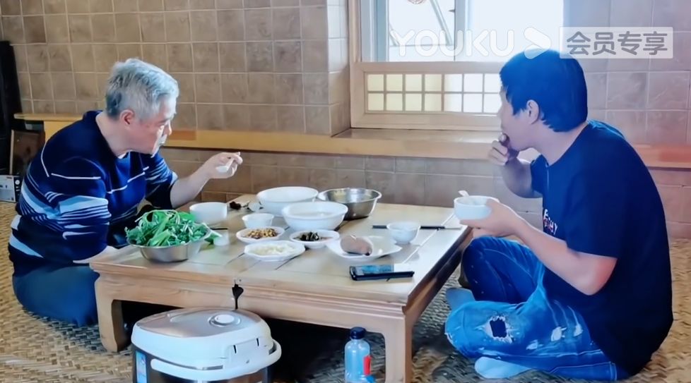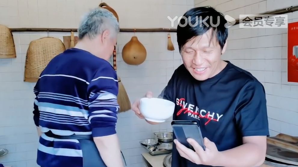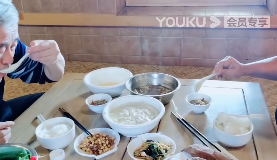 他唯一干的活,只是帮忙拿个碗、洗洗菜之类的,盛了碗豆浆还自己先喝了起来。