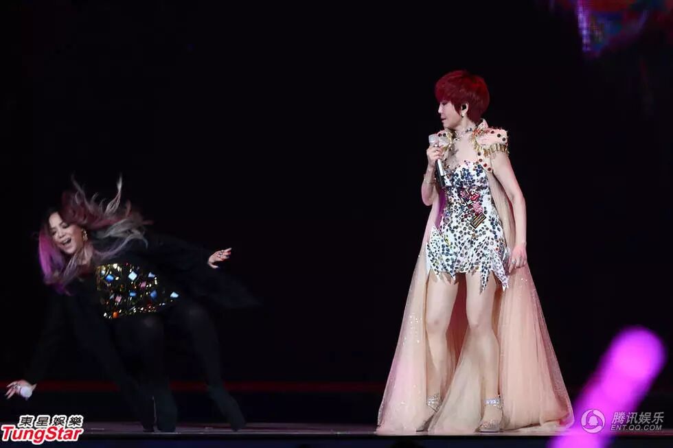 腾讯娱乐讯 美丽利器“恨天高”又惹祸了,这回被绊到的是阿妹张惠妹!昨日(8月23日),张惠妹担当江蕙演唱会嘉宾,万万没想到,她送上一段始料未及的表演。