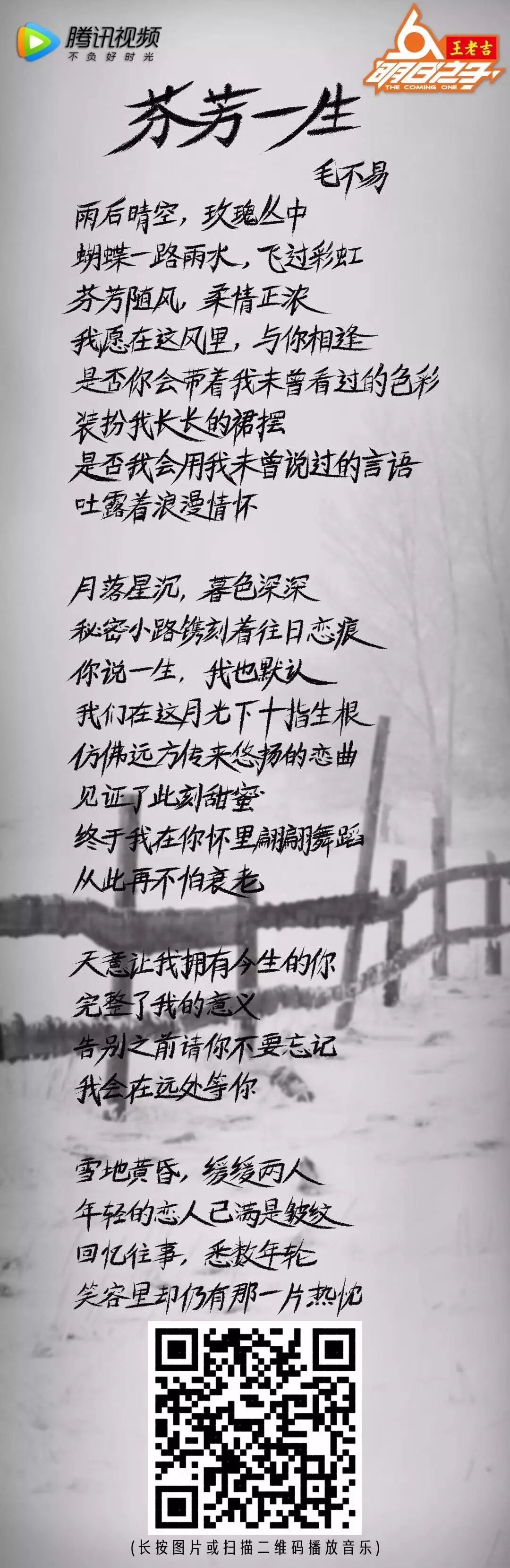 四强之一的巨星毛不易第一次在舞台唱情歌!他和帮唱嘉宾刘惜君合作了自己的原创歌曲《芬芳一生》,讲述了一个浪漫唯美人畜无害的纯爱故事,又名《一条单身狗对爱情的幻想》。![]()