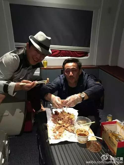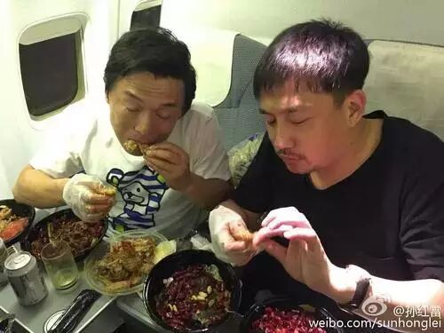 比如飞机晚点渤哥好心好意请大家吃烧鸡跟海鲜大餐,结果孙红雷却蹲在旁边拍大家吃相的囧照,谁能想到风度翩翩的黄磊老师在烧鸡面前竟然丑成马!