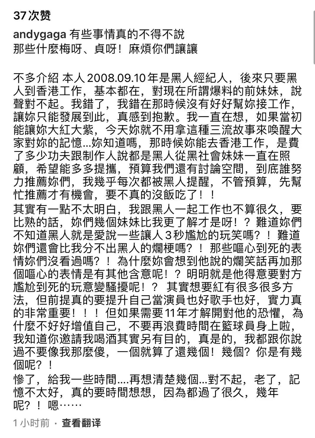 这位前经纪人的文笔感人,看完云山雾罩,但绝非没有可取之处。至少可以作为感叹号跟问号的使用教科书,开一门网课:如何让你的文字发语音。