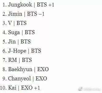 田柾国当选“2018年最火爆人气KPOP明星”,防弹少年团包揽TOP7