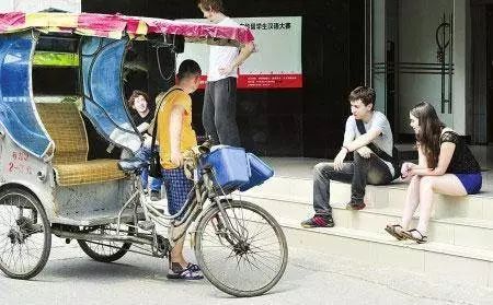 蹬车的时候,他嘴里总会念叨着刚学的外语,为此,受了不少的白眼和嘲笑。