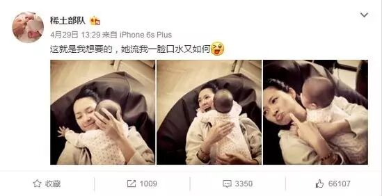以前的她可能一年也发不了几条微博,有信息发布基本上也是离不开工作。感觉她整个人都是紧绷当中的。可是自从结婚生子,她整个人都放松了。