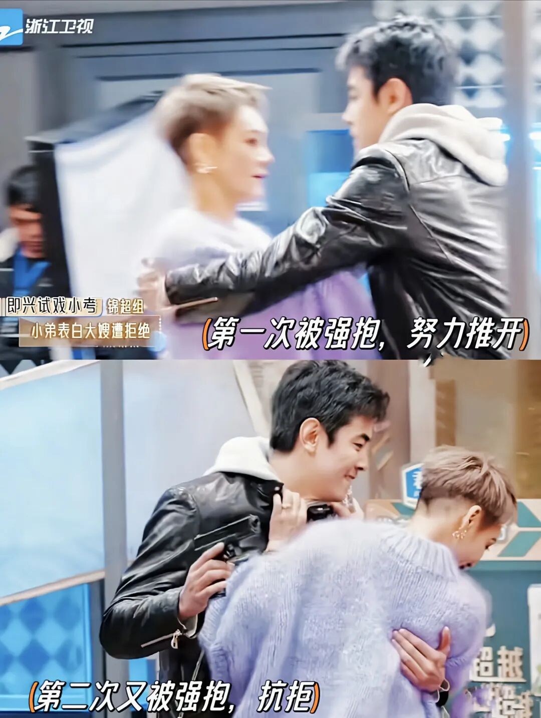 而且静姐第一句就暗示你讲对白表演就行,别走太近,第二句是被强抱住几乎算场外喊话“你能离我远一点吗”,然而他还继续按照自己那个邪路子,宁静都急得跑过去拿“武器”了...
