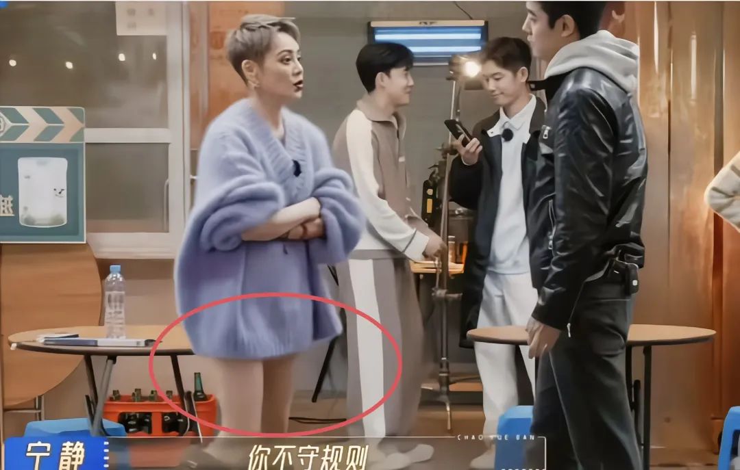 再加上宁静穿那件毛衣又是宽松低领的 无裤装,意味着存在极易走光的风险。