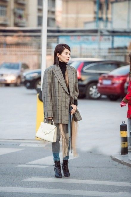 要想把格纹西装穿的时髦,面料一定要选好。肩膀消瘦的小骨架仙女可以选择硬挺、有垫肩的款式,会让你的上半身看起来不至于那么单薄。
