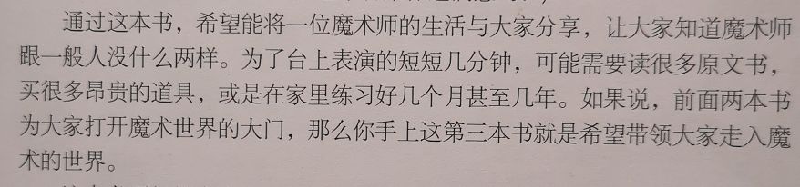 以前买过一本刘谦的书,这个系列前两本是教你怎么变魔术,这一本则增加了各大魔术师介绍和魔术文化。