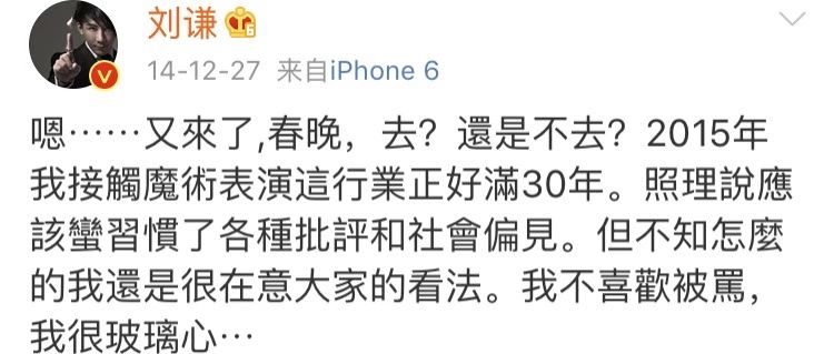 哪怕之前被质疑那么多次,刘谦还没有像今年这样这么不忿反击过,完美诠释了“大家可以批评我的人格,但是请不要质疑我的业务能力”。