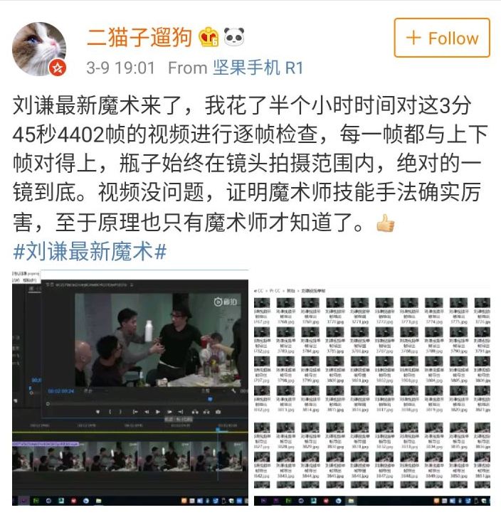 于是酝酿了一个月后,3月9日下午,刘谦抛出一个视频自证▼▼▼