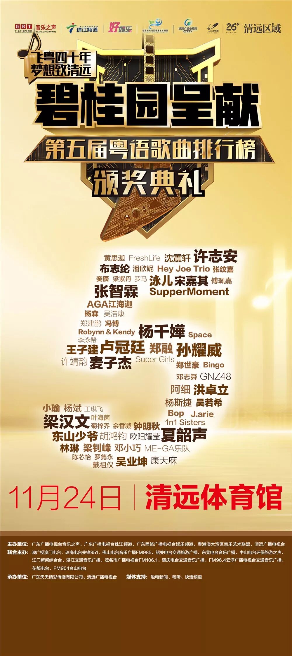 主办单位:广东广播电视台音乐之声、广东广播电视台珠江频道、广东网络广播电视台娱乐频道、粤港澳大湾区音乐艺术联盟、清远广播电视台