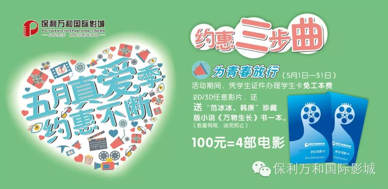 【为青春放行】童鞋注意!“范冰冰、韩庚”珍藏版小说免... 保利万和国际影城 内地男星 2016-04-29 11:22:46 270 创作不易,用心坚持,欢迎请BaGua喝几杯爱心咖啡!打赏并支持本文 打赏并删除本文 约惠三步曲——为青春放行(5月1日—31日) 活动期间,凭学生证件办学生卡免工本费,100元=4部电影2D/3D任意影片, 还送“范冰冰、韩庚”珍藏版小说《万物生长》书一本。 (数量有限,送完即止) 创作不易,用心坚持,欢迎请BaGua喝几杯爱心咖啡!打赏并支持本文 打赏并删除本文 感谢您的支持鼓励,我会继续努力的!文章地址:用户邮箱:打赏金额:USDT 请输入数字点击”去打赏“,即可进行打赏支持本文章哦 韩庚 About the Author 保利万和国际影城 功能介绍:影迷互动,文化推广,品牌宣传. Related Posts 【今日影讯】EXO成员朴灿烈全中文惊喜献声—《黑粉》 2016-06-30 10:45:41 【为青春放行】童鞋注意!“范冰冰、韩庚”珍藏版小说免... 2016-04-29 11:22:46 胡歌、霍建华亲笔签名照等你来拿! 2016-03-05 10:14:31 发表评论