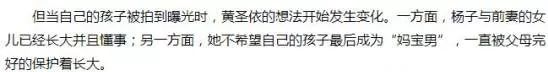 一方面,杨子与前妻的女儿已经长大并且懂事;另一方面,她不希望自己的孩子最后成为“妈宝男”,希望他自己直面风雨。