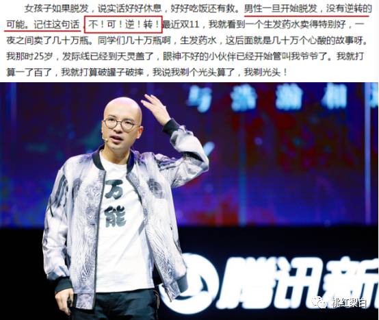 他还给如今开始脱发的90后灌了一碗毒鸡汤。