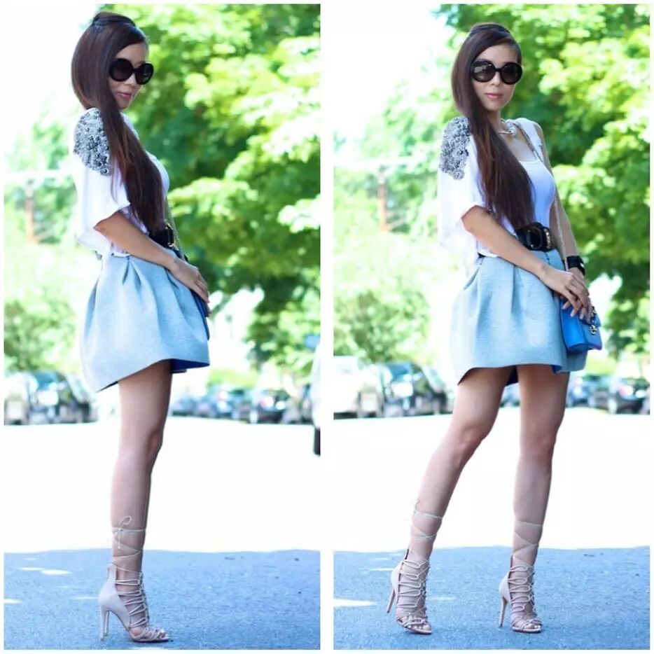 还有这种高筒绑带鞋,更是比较挑人穿,尤其是系带比较粗的鞋子,小心看起来像土行孙,如果腿部线条不够美,建议不要轻易尝试。