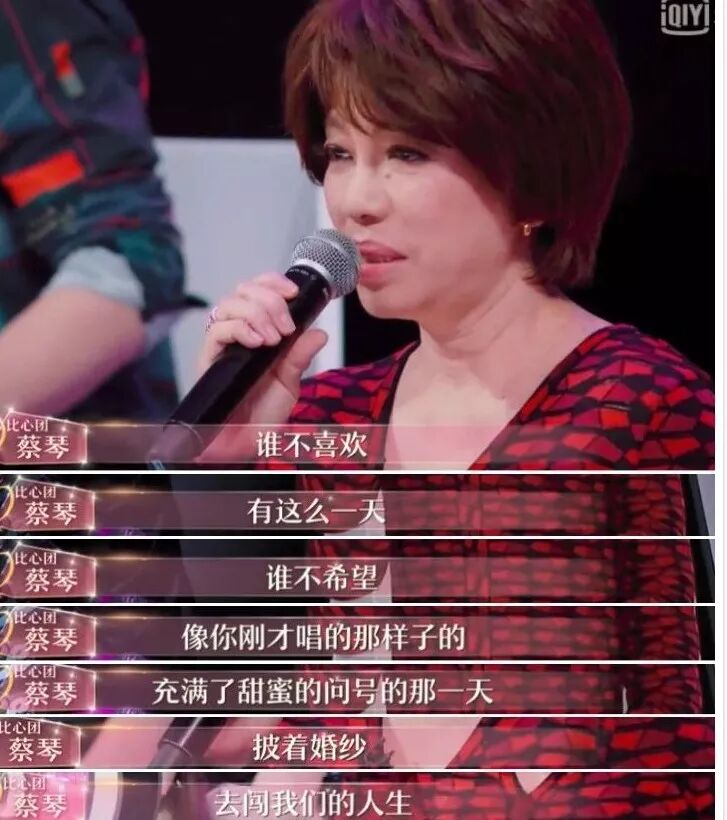 在参加一个音乐节目时,面对一个满怀深情演唱《出嫁》的女孩,她突然泣不成声: