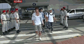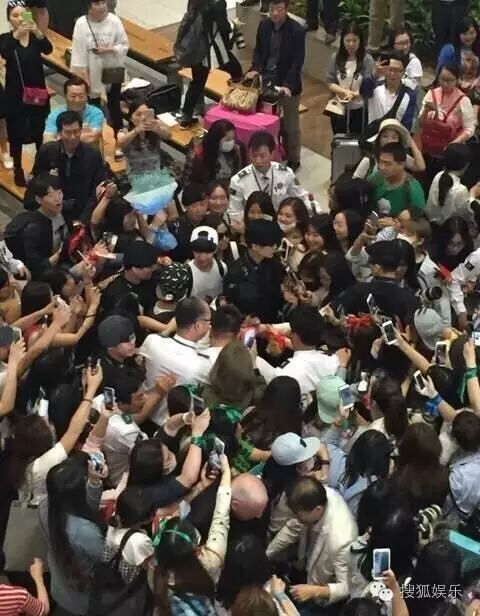 为了担心粉丝拥堵现象,郑氏姐妹一落地便有20多个保镖便冲了过来,将姐妹俩团团围住。