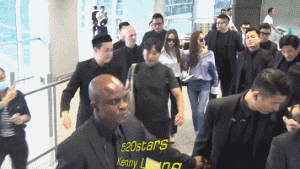 于是本来画风应该是“粉丝围追堵截,保镖护送明星”的……