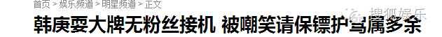 前几年韩庚就传出过“到了机场带着保镖却无粉丝接机”的新闻。