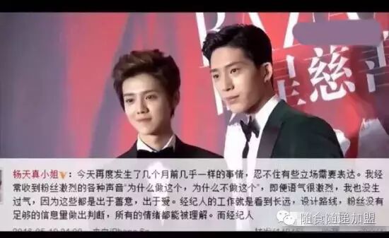 接着,鹿晗经纪人杨思维也发表微博,内容大意可体提炼为:斥井柏然方为做新闻和发泄炒作。