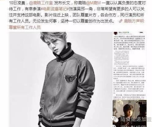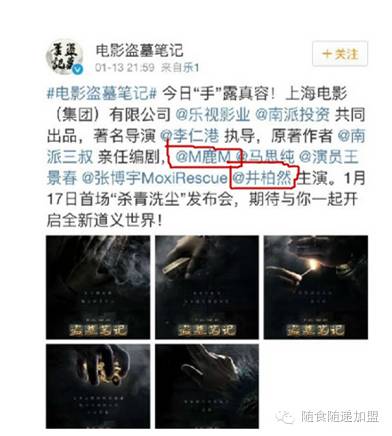 鹿晗粉丝先是质疑井柏然团队私自泄露电影宣传物料。