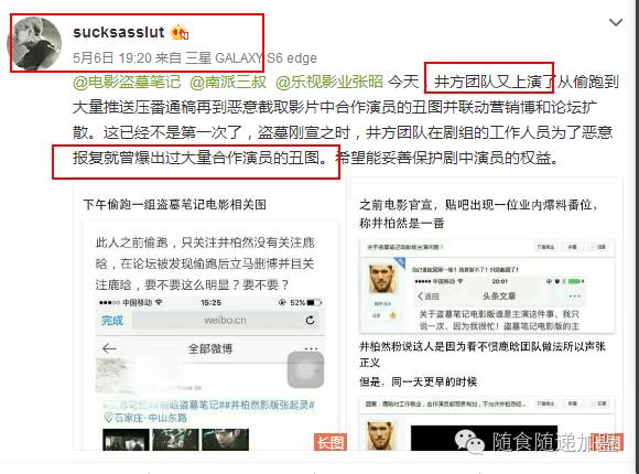 而整个事件的导火索,也恰恰是该粉丝5月6日在微博上,发布了暗指井柏然团队和粉丝提前泄露电影宣传物料,并且潜入剧组、恶意抓拍鹿晗丑图的内容!