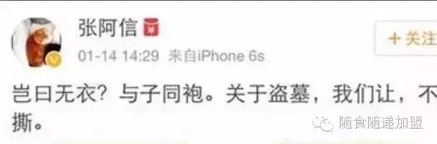 1月14日下午,井柏然经纪人张阿信发布微博称,“岂曰无衣?与子同袍。关于盗墓,我们让,不撕。”