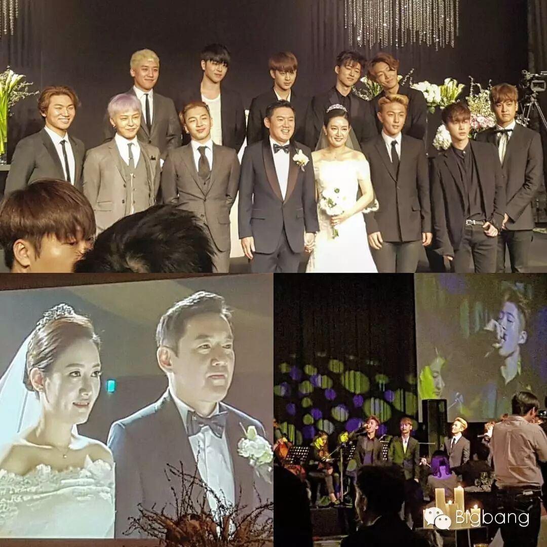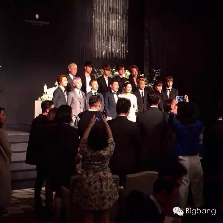 9日,G-Dragon, 太阳,大声,胜利出席Live Nation韩国分公司CEO Yongbae Cho的婚礼。照片中欧巴们笑的好开心哦,穿西装的样子真是满满的男友力,实力“西装杀”,简直帅翻天~