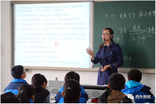 王江涛老师的课题是《英国的制度创新》。王老师通过播放视频,让同学们了解英国的首相制度。整节课体现了王老师的教学个性与自己的教学风格特点。
