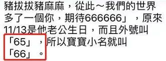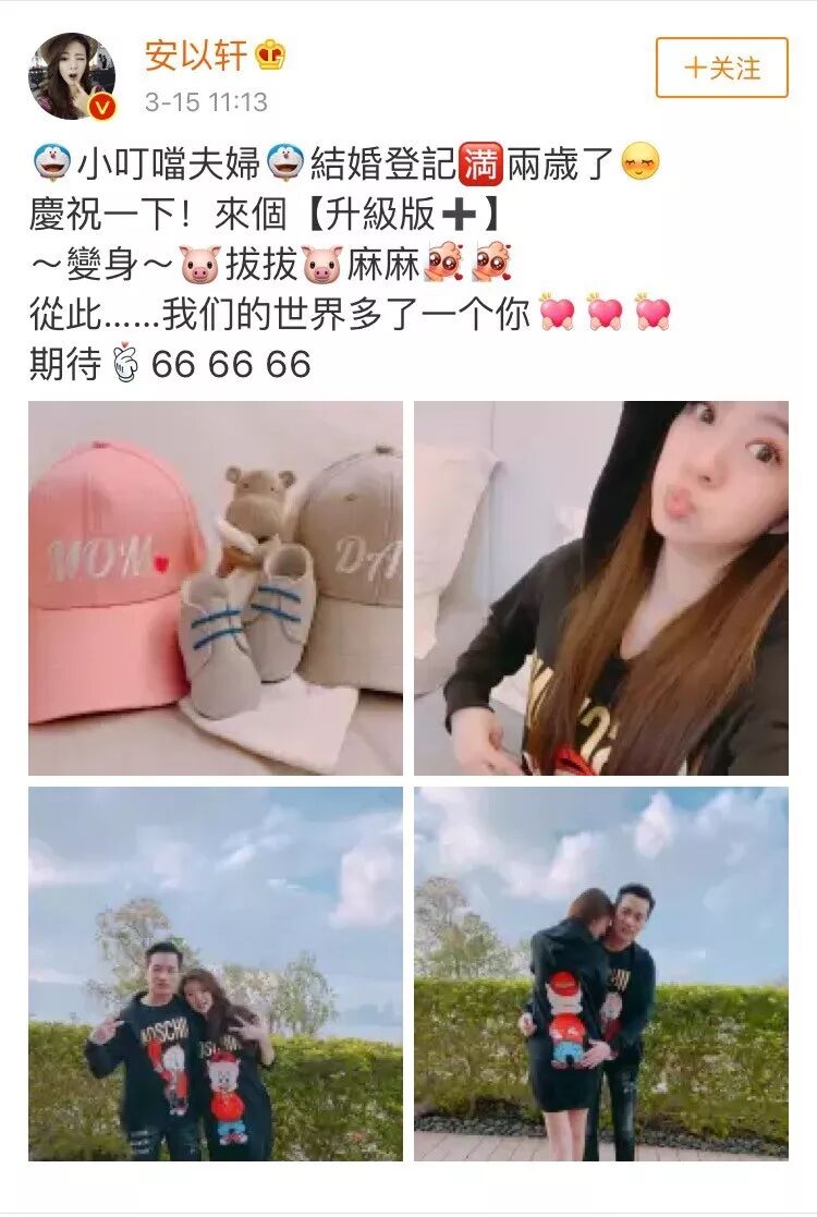 而且官宣的时候,安以轩的微博后面有个:期待66 66 66,这个其实是宝宝的小名,因为老公陈荣炼的外号叫65,所以宝宝小名是66。(女神也是蛮任性的)