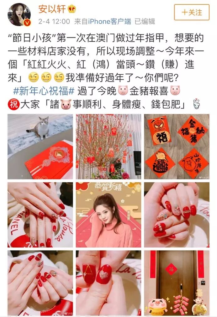 怀孕了当然也不能停止扮靓,这不,安以轩还在孕期做了个红红火火漂漂亮亮的指甲。