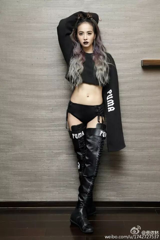 哪吒头也可以很酷,蔡依林在万圣节po出的照片,染了渐变发色,配上crop top,酷美酷美的!