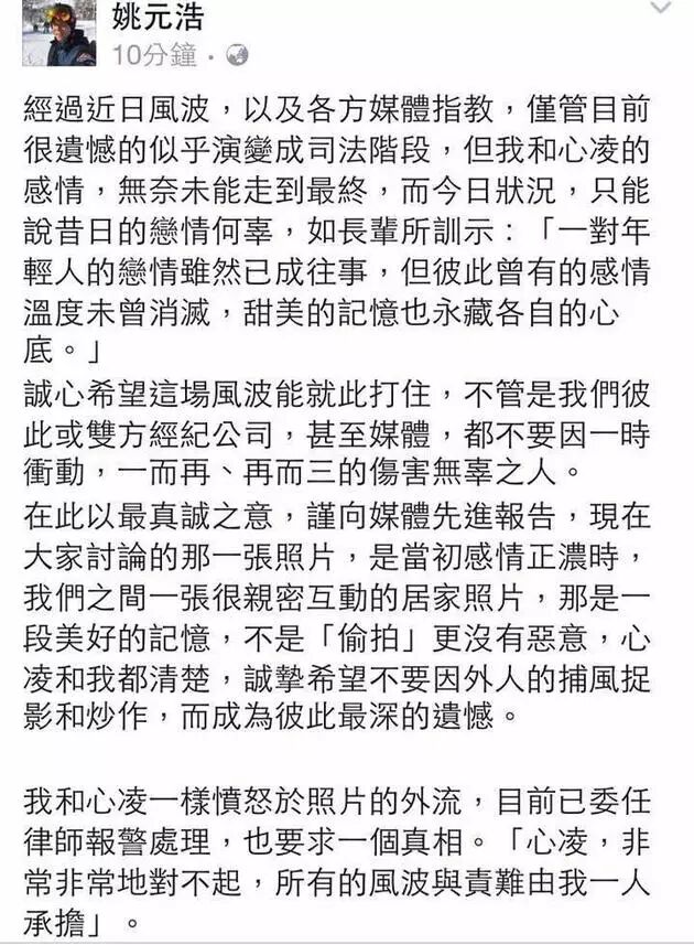 正如很多网友吐槽的,分手见人品,恋爱期间只要双方达成共识拍什么照都无可厚非,问题是分手后居然能流传出来,究竟是谁泄露的照片不得而知,但作为照片唯一拍摄者的前男友姚元浩却无论如何都脱不了干系,就算不是恶意为之,“保管不当”的责任是一定要扛的。可是在王心凌全程“心情惊慌、努力坚强”的时候,前男友却一句道歉都没有,难怪很多网友表示无法接受,直呼其为“渣男”。