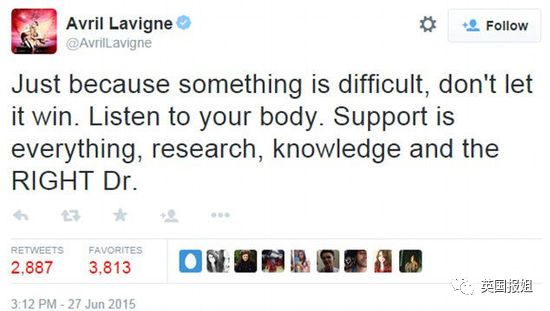 原来,之前消失是因为艾薇儿当时被查出换上了莱姆病。这种病,早期皮肤上会出现红斑,后期会出现神经、心脏或关节的病变,严重的甚至会危机生命。