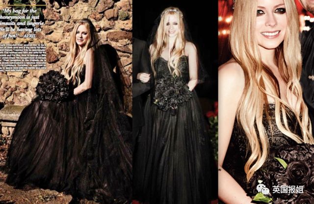 特立独行的艾薇儿,这次没有选择传统圣洁的白婚纱,而是一袭不羁的黑色,完成了人生第二次重大典礼。