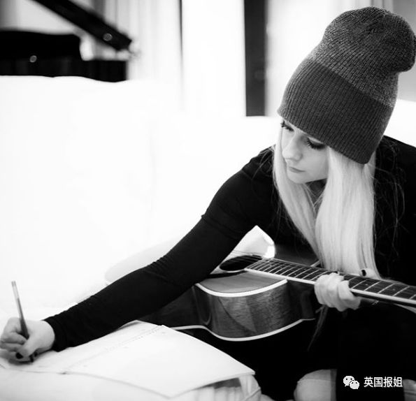 艾薇儿的Ins也经常放出她写歌,在录音棚里视唱的照片。