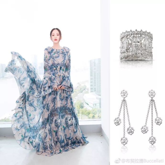 陈乔恩 佩戴布契拉提珠宝出席2018上海电视节#白玉兰绽放颁奖典礼# ,指间璀璨的 BandRing 系列钻石戒指和灵动的 Opera 系列耳坠,逆光下的飘逸裙摆,优雅灵动,清丽脱俗。