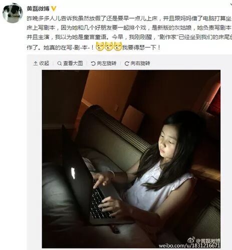 譬如今天就晒出小女儿多妹的近照,并配文:“阳光下的小女孩。”