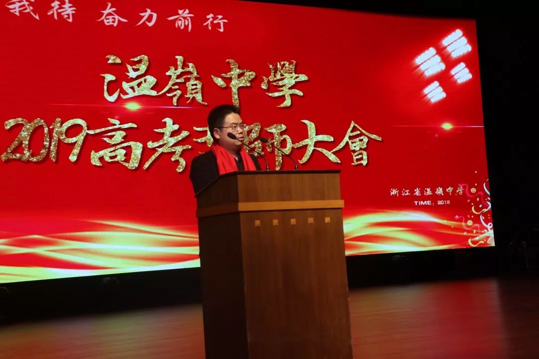 2019年2月16日下午3:30,在高三年级分管校长孙银河的主持下,“时不我待 奋力前行”温岭中学2019高考誓师大会在校士艺术馆缓缓拉开序幕。