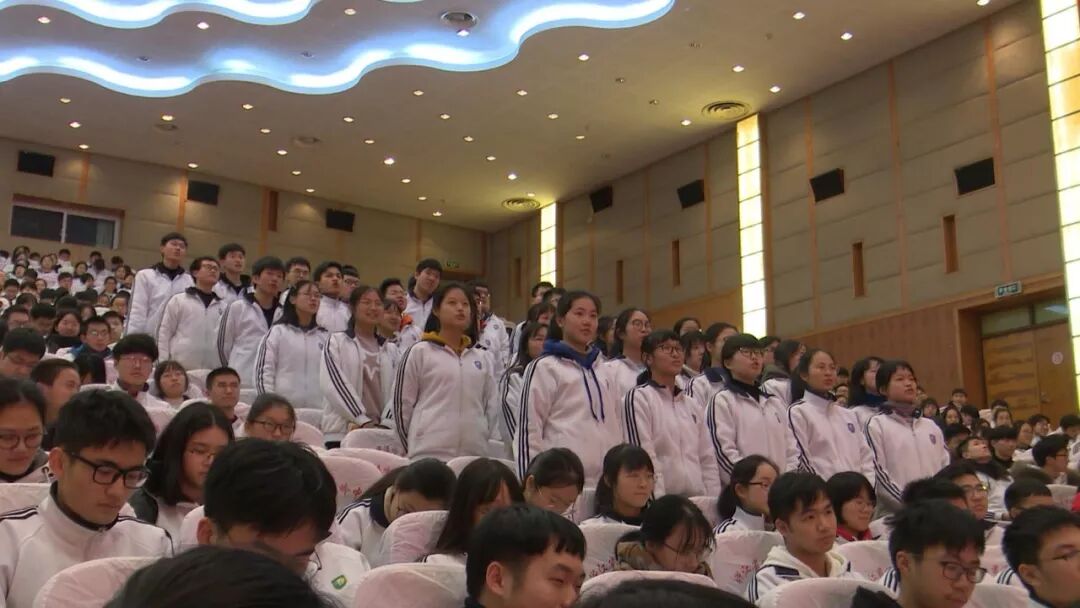 潘云岳校长带领全体高三师生齐唱《怒放的生命》,高三师生凝心聚力,为梦想全力以赴。